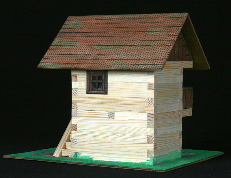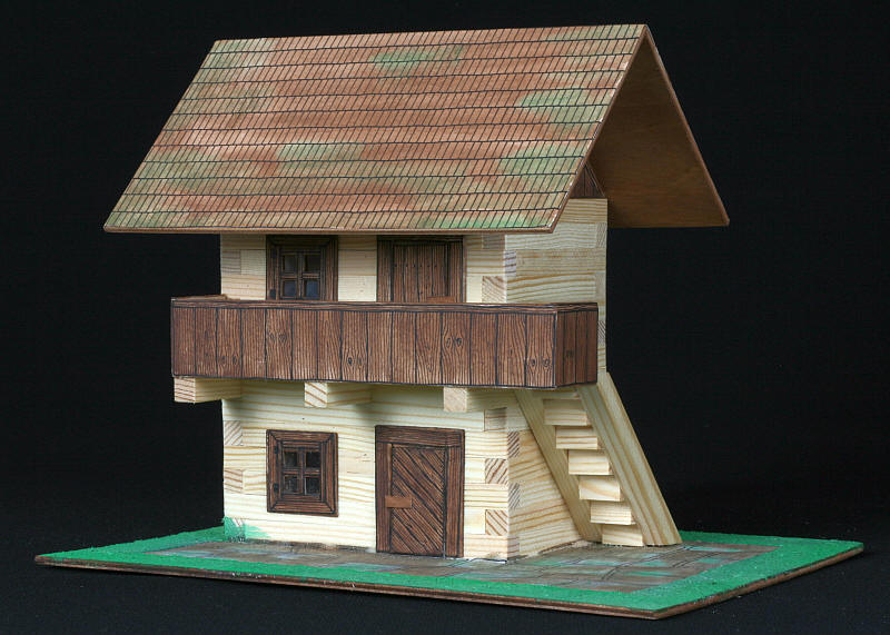 Komplet vsebuje material in dele, ki so potrebni za gradnjo kašče: lesene dele različnih dolžin in debelino 9×9 mm, sestavne dele za izgradnjo strehe, oken, vrat, podlage iz vezanega lesa, folijo za steklo na oknih in druge komponente, ki jih potrebujemo za izgradnjo konstrukcije. Prah, ki je priložen, je namenjen simboliziranju trave, smirkov papir pa za manjše popravke. Prav tako je priložen podroben načrt gradnje.