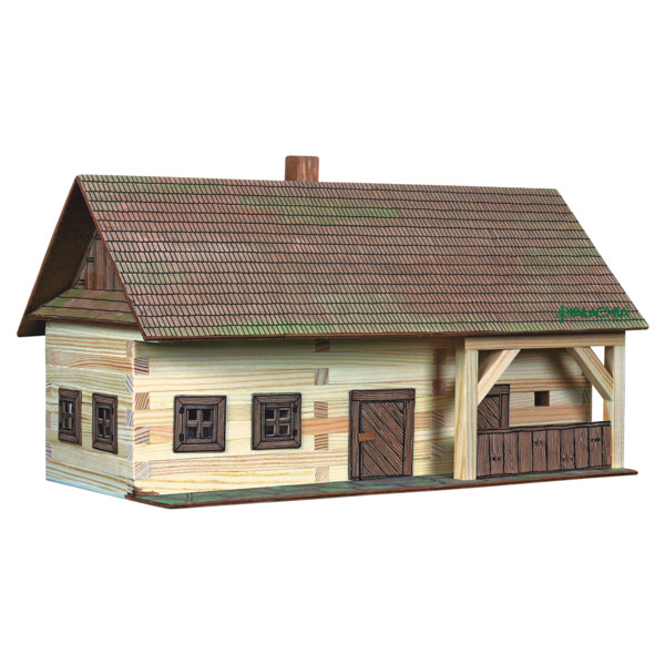 Komplet vsebuje material in dele, ki so potrebni za gradnjo kmetije: lesene dele različnih dolžin in debelino 9×9 mm, sestavne dele za izgradnjo strehe, oken, vrat, podlage iz vezanega lesa, folijo za steklo na oknih in druge komponente, ki jih potrebujemo za izgradnjo konstrukcije. Prah, ki je priložen, je namenjen simboliziranju trave, smirkov papir pa za manjše popravke. Prav tako je priložen podroben načrt gradnje.