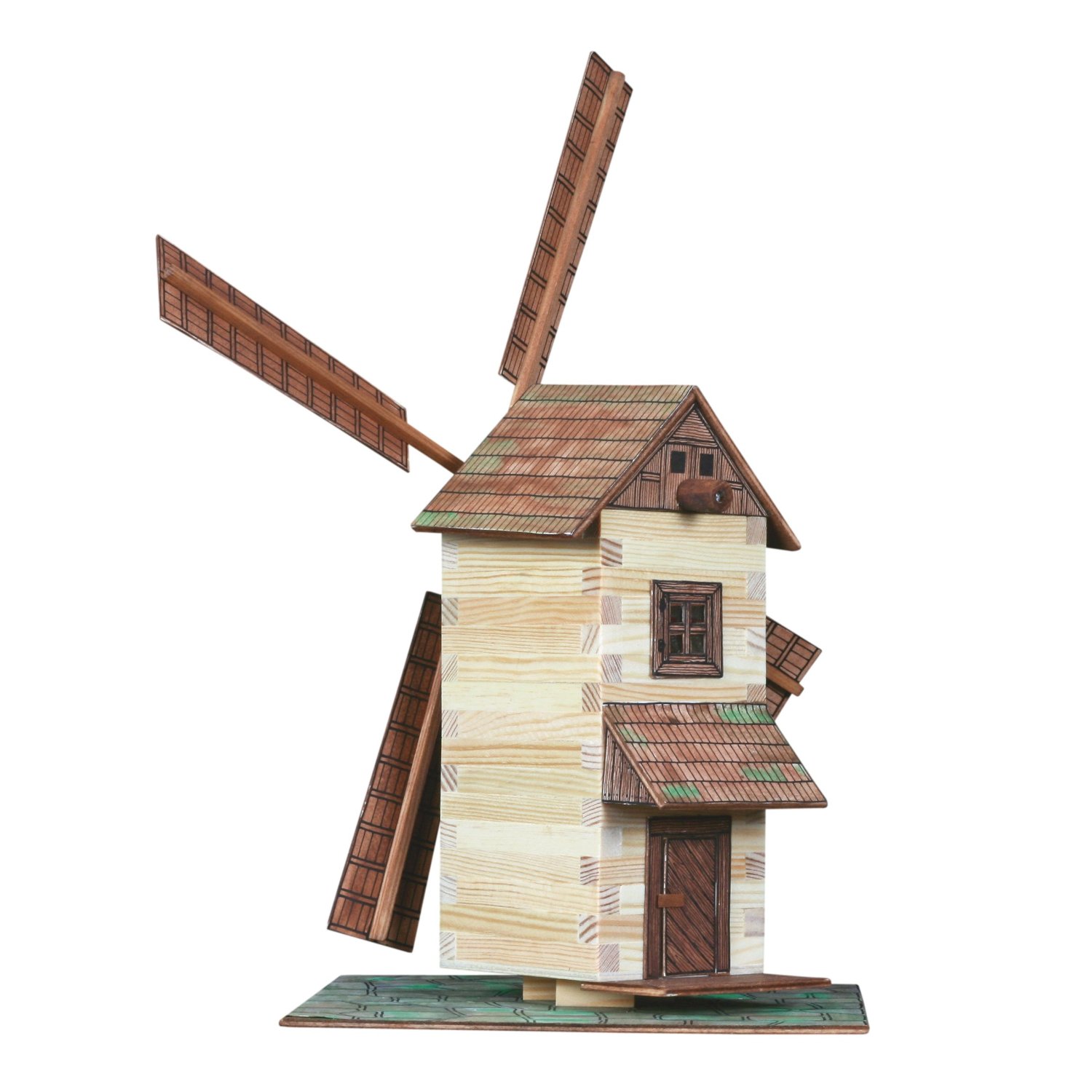 Komplet vsebuje material in dele, ki so potrebni za gradnjo mlina na veter: lesene dele različnih dolžin in debelino 9×9 mm, sestavne dele za izgradnjo strehe, oken, vrat, podlage iz vezanega lesa, folijo za steklo na oknih in druge komponente, ki jih potrebujemo za izgradnjo konstrukcije. Prah, ki je priložen, je namenjen simboliziranju trave, smirkov papir pa za manjše popravke. Prav tako je priložen podroben načrt gradnje.