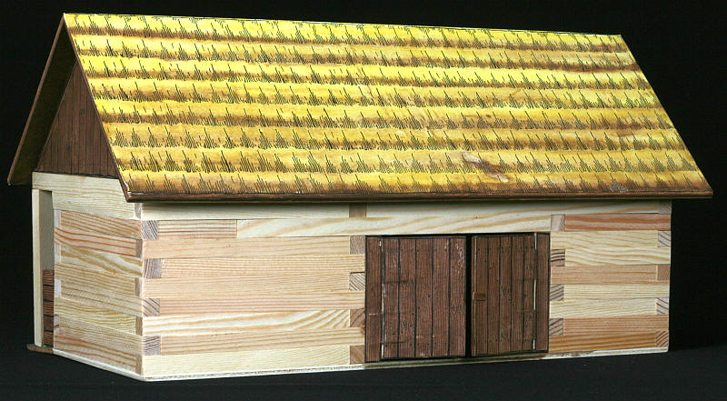 Komplet vsebuje material in dele, ki so potrebni za gradnjo skednja: lesene dele različnih dolžin in debelino 9×9 mm, sestavne dele za izgradnjo strehe, oken, vrat, podlage iz vezanega lesa, folijo za steklo na oknih in druge komponente, ki jih potrebujemo za izgradnjo konstrukcije. Prah, ki je priložen, je namenjen simboliziranju trave, smirkov papir pa za manjše popravke. Prav tako je priložen podroben načrt gradnje.