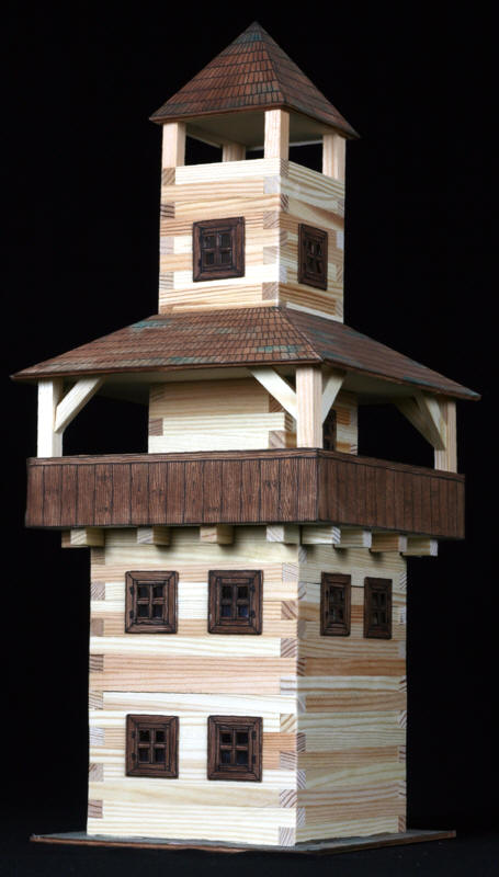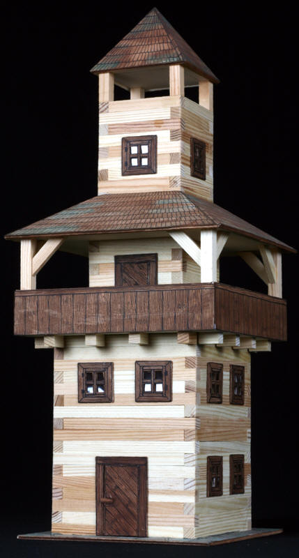 Komplet vsebuje material in dele, ki so potrebni za gradnjo stolpa: lesene dele različnih dolžin in debelino 9×9 mm, sestavne dele za izgradnjo strehe, oken, vrat, podlage iz vezanega lesa, folijo za steklo na oknih in druge komponente, ki jih potrebujemo za izgradnjo konstrukcije. Prah, ki je priložen, je namenjen simboliziranju trave, smirkov papir pa za manjše popravke. Prav tako je priložen podroben načrt gradnje.