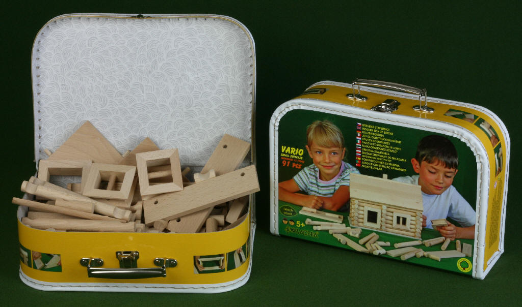 Iz kompleta VARIO KOVČEK je mogoče zgraditi najmanj 12 vrst različnih lesenih konstrukcij.