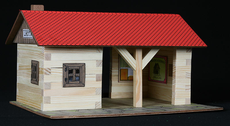 Komplet vsebuje material in dele, ki so potrebni za gradnjo železniške postaje: lesene dele različnih dolžin in debelino 9×9 mm, sestavne dele za izgradnjo strehe, oken, vrat, podlage iz vezanega lesa, folijo za steklo na oknih in druge komponente, ki jih potrebujemo za izgradnjo konstrukcije. Prah, ki je priložen, je namenjen simboliziranju trave, smirkov papir pa za manjše popravke. Prav tako je priložen podroben načrt gradnje.