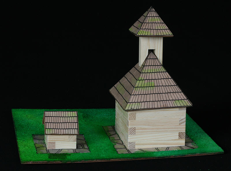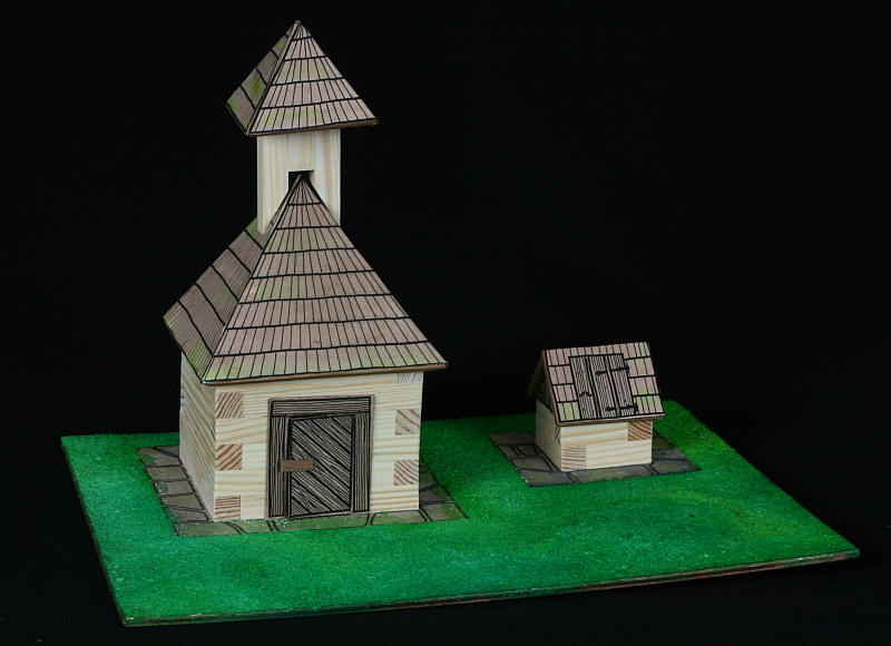 Komplet vsebuje material in dele, ki so potrebni za gradnjo zvonika in vodnjaka: lesene dele različnih dolžin in debelino 9×9 mm, sestavne dele za izgradnjo strehe, oken, vrat, podlage iz vezanega lesa, folijo za steklo na oknih in druge komponente, ki jih potrebujemo za izgradnjo konstrukcije. Prah, ki je priložen, je namenjen simboliziranju trave, smirkov papir pa za manjše popravke. Prav tako je priložen podroben načrt gradnje.